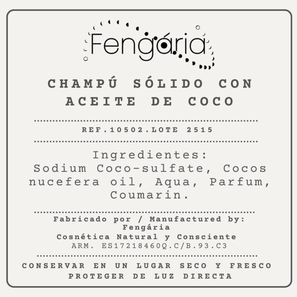 Champú sólido con aceite de coco, muestra un aroma a coco delicioso, para uso diario indicado para pelo seco y cuero cabelludo sensible.